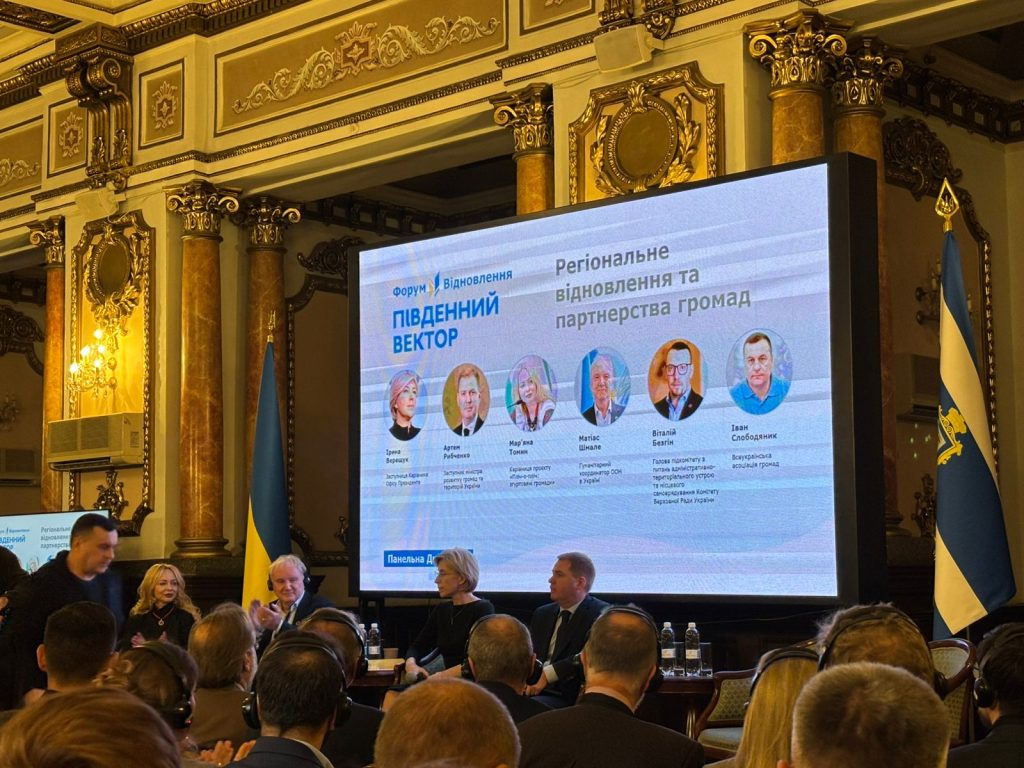 В Одесі відбувся Форум відновлення «Південний вектор», який зібрав представників органів влади, міжнародних та громадських організацій, щоб обговорити шляхи відновлення та підтримки громад півдня України.