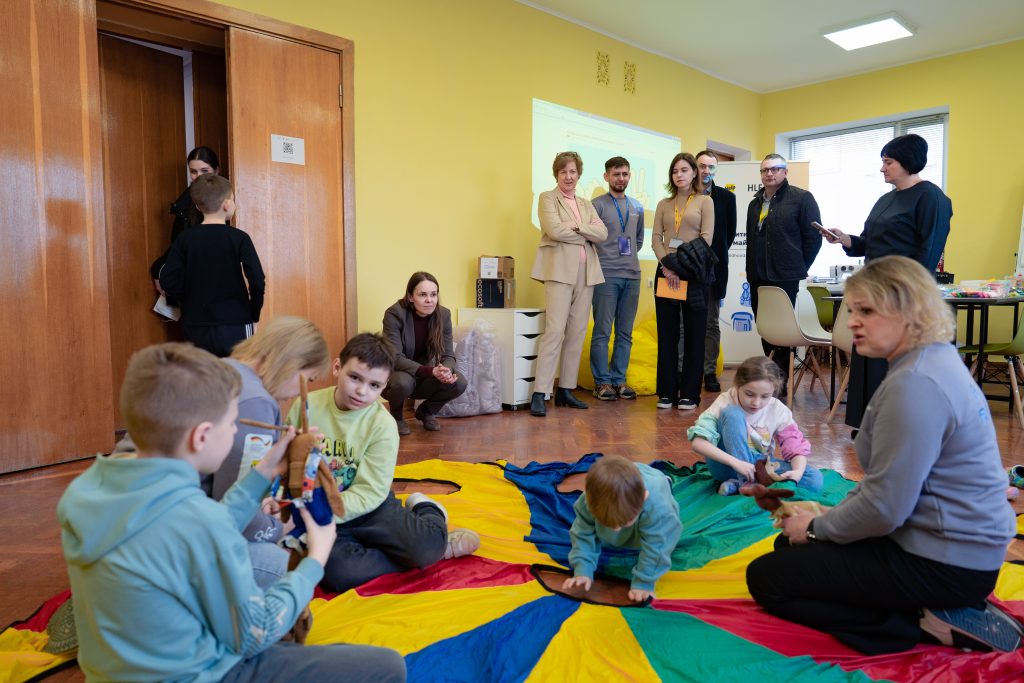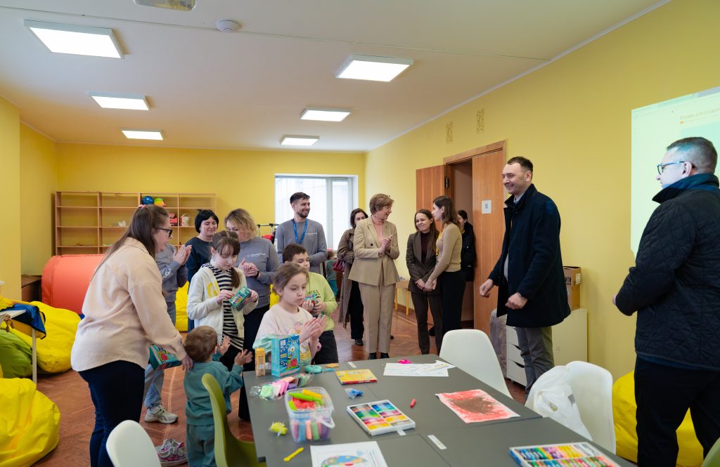 Під час візиту делегація відвідала дитячий простір, створений у межах проєкту «На крилах дитинства – у безпечне майбутнє», який реалізується для дітей з інвалідністю. Учасники мали змогу побачити, як проходять заняття з психологом і фасилітатором, спрямовані на підтримку дітей у складних умовах.