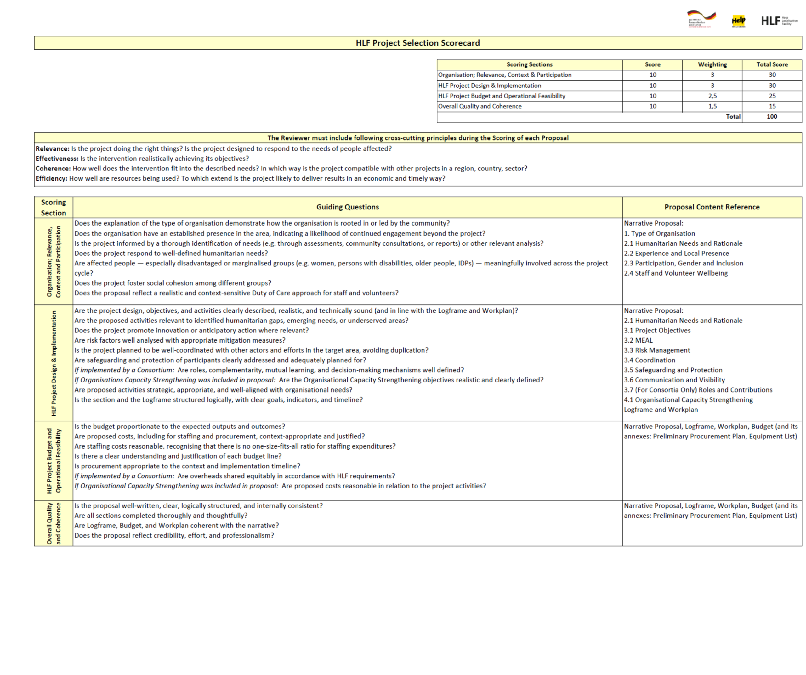 HLF дотримується гнучкого підходу, який цінує різноманітні способи, в які, особливо малі суб’єкти громадянського суспільства, роблять свій внесок у гуманітарне реагування – часто в координації з офіційними структурами, але не обмежуючись ними. Хоча сувора узгодженість із системою гуманітарних кластерів не є обов’язковою, HLF визнає її центральну роль у гуманітарній координації.